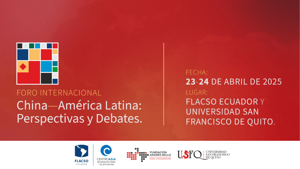 This forum is co-organized by FLACSO Ecuador, Universidad San Francisco de Quito (USFQ) – Faculty of Social Sciences, Institute for Advanced Studies on Inequalities (IEAD), Asian Studies Group – and Fundación Andrés Bello (ABF), Latin American–Chinese Research Center.